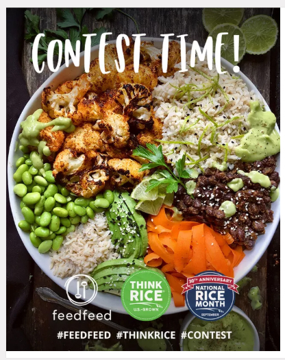 今年9月,为庆祝全国大米月,美国稻米与美食社区FeedFeed合作开展了一个为期一个月的食谱比赛。这个比赛旨在鼓励更多人使用美国产大米,以及鼓励大家分享自己烹饪大米料理的方法。
