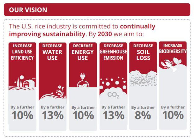 美国稻米设计了一款新的图示手册用以帮助出口商、海外进口商和终端用户理解美国稻米可持续发展的故事,可持续发展的特点使美国稻米区分于其他产地的稻米。这份图示手册不仅展现美国稻米过去取得的成果,也介绍了现状,还点明了美国稻米未来可持续发展的目标。