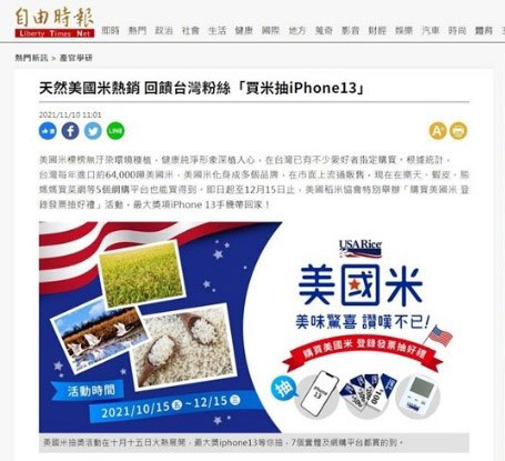 美国稻米协会和两家美国大米进口商在台湾推出了为期两个月的结合线上和线下元素的零售促销活动,并于12月中旬结束。最初的计划是在两家连锁超市和两个在线市场的店内进行促销。连锁超市包括台湾最大的杂货零售商 PX Mart,拥有 1,000 多家门店。