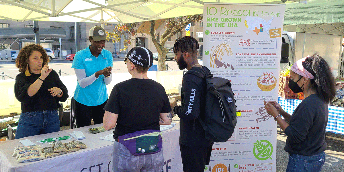 该市场从5月到10月每周五举行,由美国农业部农业营销服务局组织,有30个农民、牧场主和当地企业参加,推广美国农业。美国稻米协会上一次参加是在2019年,当时该市场是穿越大西洋中部的 “与大米同行 “之旅的一站,该团队在他们离开的地方继续前进。