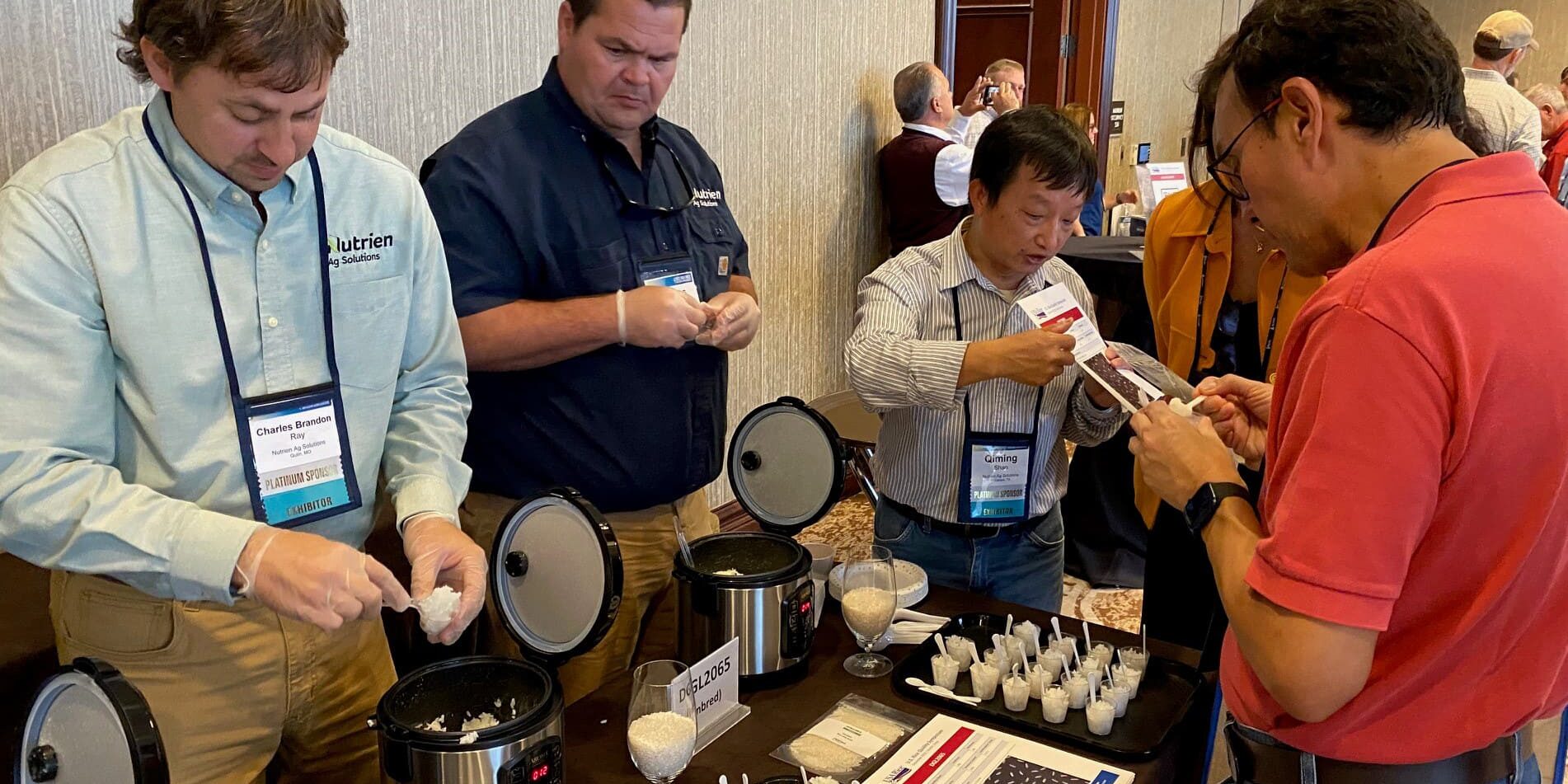 来自公立大学和私营部门的七位育种专家在会上展示了目前正在开发和生产的23个美国水稻品种。现场烹饪演示和口味测试增加了亲身体验,使与会者了解到美国大米行业在未来生产中的情况。宣传页列出了新品种大米的主要特征,同时还分发了包装精美的特色品种样品。